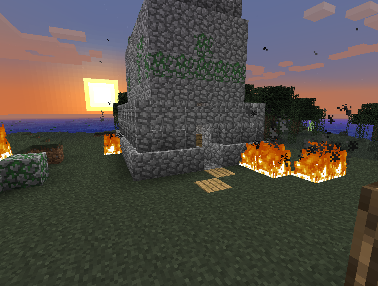 Забавный факт: Когда я строил, ко мне подбежала Ведьма ( моб такой ) и просилась помочь. Я вежливо отказал... Хотя кого я обманываю, я утопил её в лаве.