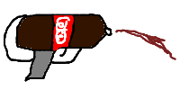 Он стреляет колой с ментосом. Заправляется максимум на 2 литра, при выстреле выбрасывает 100 граммов колы (т.е. 20 выстрелов - и заряжай). Может сбить человека с ног (например, в пудинг). Стоит 20 ютерсов.